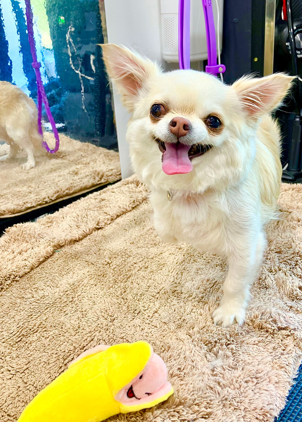 Our lux mobile spa is a low sensory Sanctuary. We only use premium products and equipment. A warm massaging hydro bath, a towel warmer, blueberry facials, calming essential oil aromatherapy, toys, treats and relaxing music. Our grooming salon is designed with your dog's well being as our top priority.